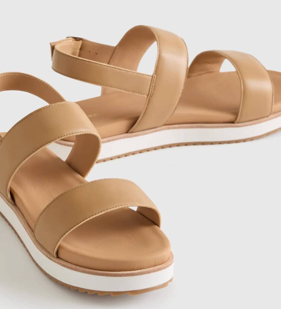 - I’ve shown my Quince “platform” sandals before. They keep selling out but if you do get on the waitlist, they eventually come in.