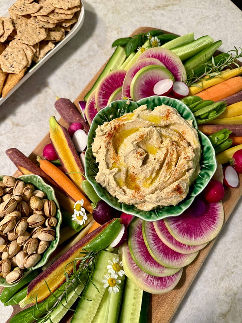 You can get the watermelon radishes at Whole Foods right now. I know, I’ve been making these platters for years. You may also like Make Your Best Party Platter Ever! And Easy GREEK PARTY Platter.