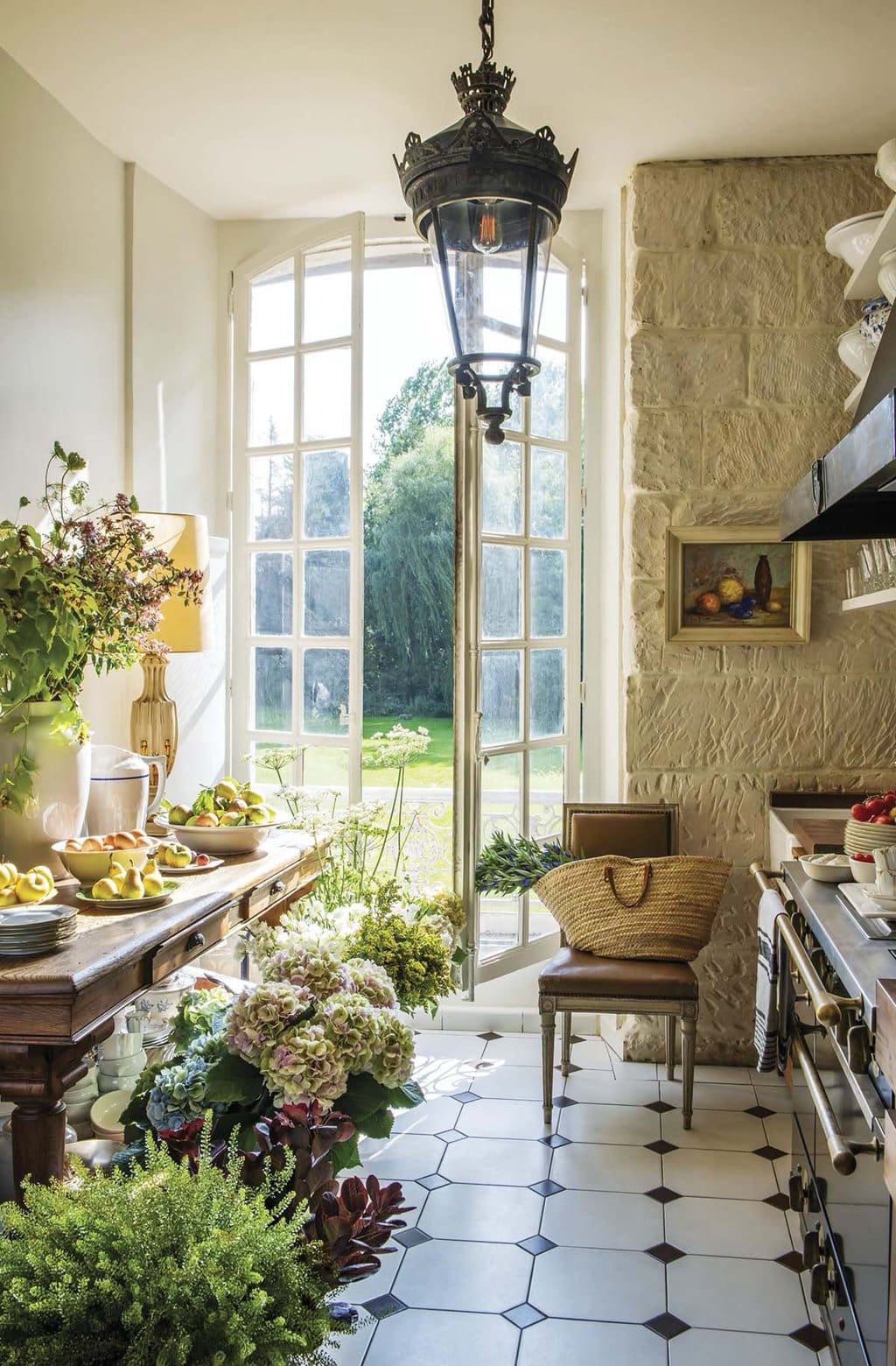 Think limed oak, soft plaster walls, and antique pieces with gentle wear. It’s about mixing the rustic with a touch of refinement — aged but not heavy. Nothing is too perfect.
