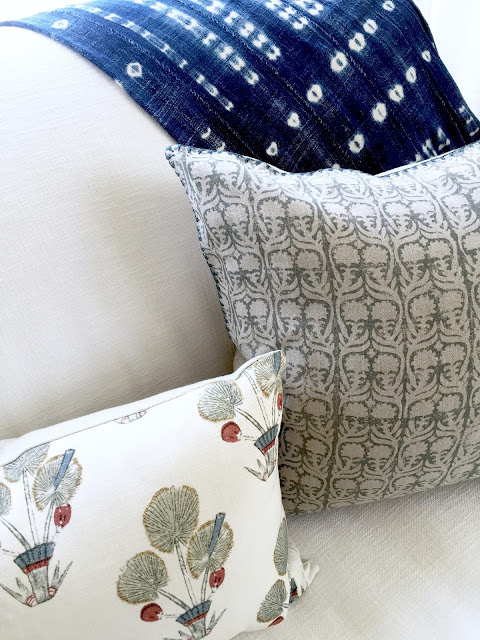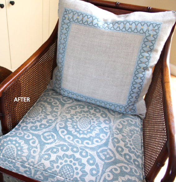New seat cushion, here without tufting…and a pretty pillow added.