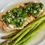 We garnished the dish with lemon slices and parsley leaves.