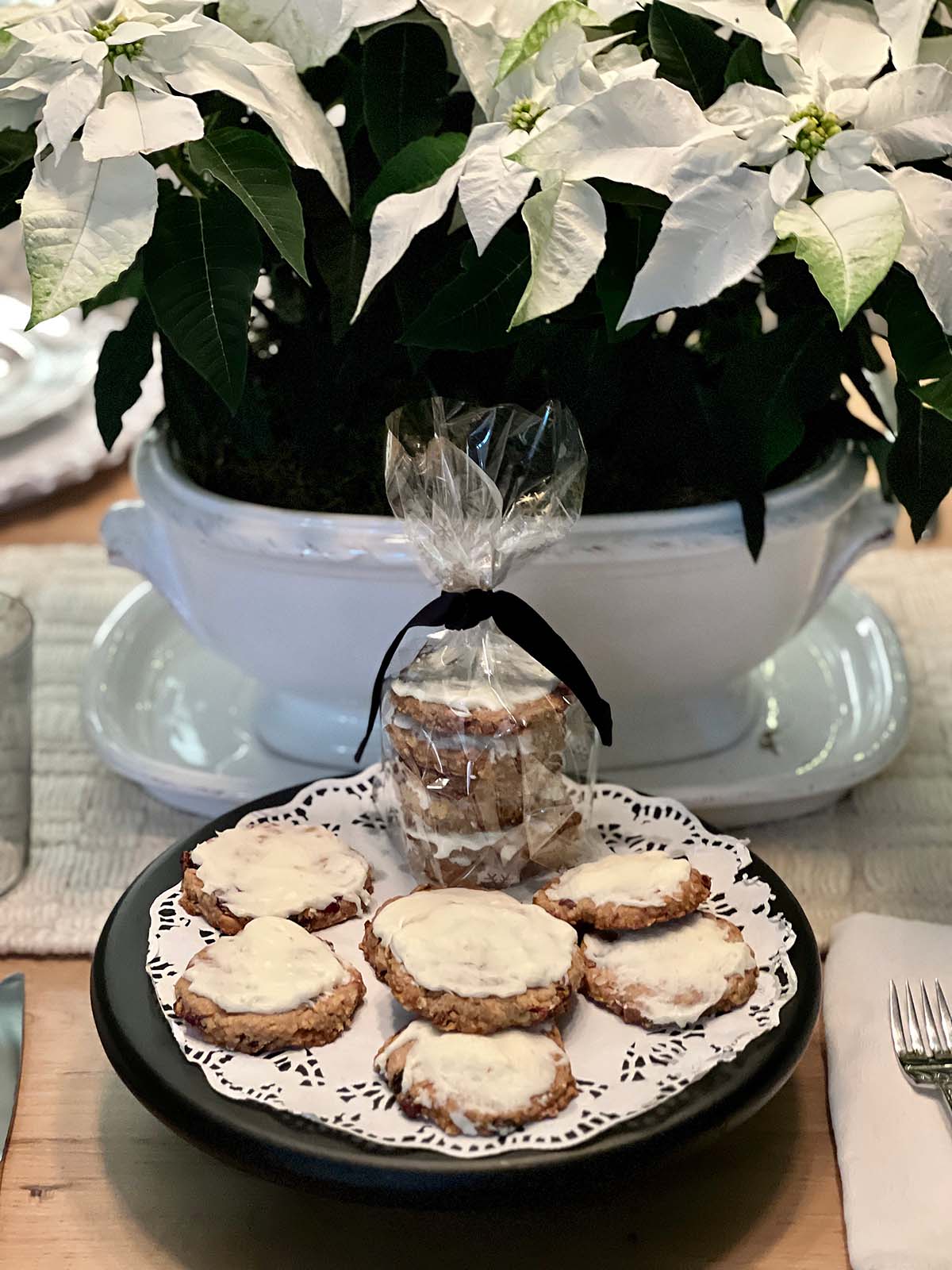 It’s the time of year for indulgent delights like Almond Cranberry Cookies With White Chocolate Frosting. They are perfect as a dessert treat with coffee or port, as an addition to a dessert platter or packaged as a pretty gift to share.