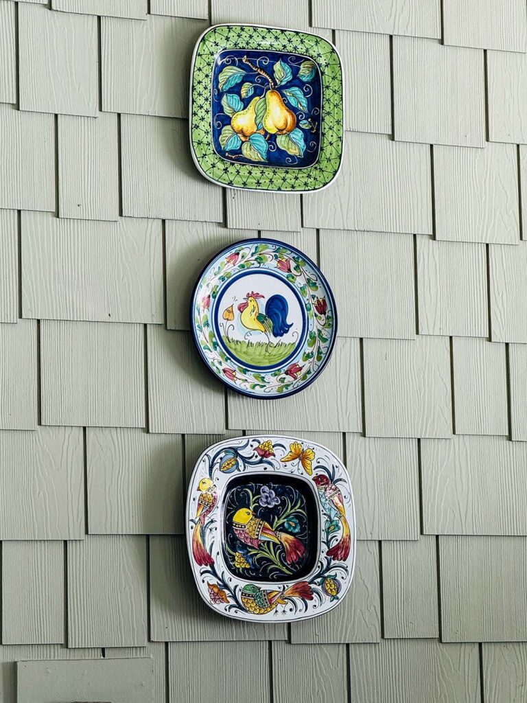 This week, I spent a little time adding to the hanging plates we have collected over the years in Italy. Some of them were packed away.