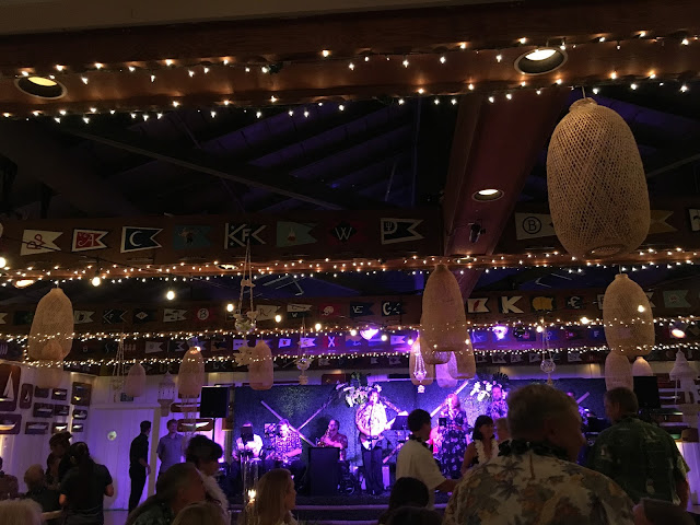 We each got a lei. Here I am with Laura before the guests arrived (wearing flat sandals…I regretted that–but I got over it, especially when it was time to dance).