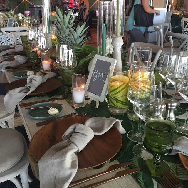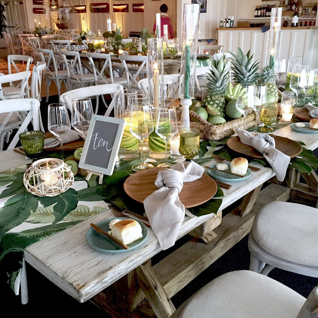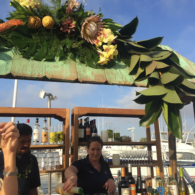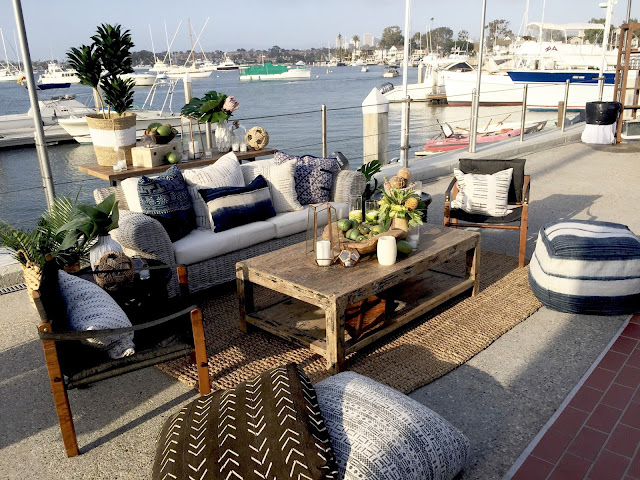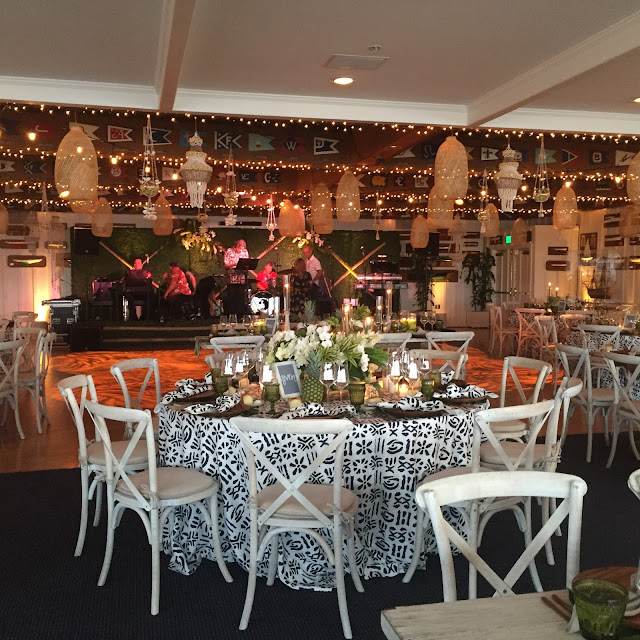 My friend, Laura throws the most wonderful parties. Remember her daughter’s Old California themed wedding? This time, it was her husband, Jack’s birthday celebration at the Newport Harbor Yacht Club. The above sitting area set the tropical, boho chic tone as we arrived.