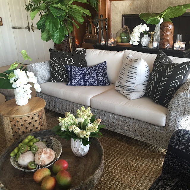 There was another sitting area inside. Look at the painted pineapples! I love all the textiles.