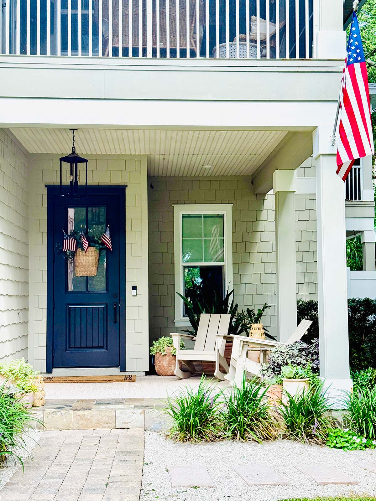 I’m not crazy about all the color in the slate tile on the front porch so we are using an indoor/outdoor rug from Target.