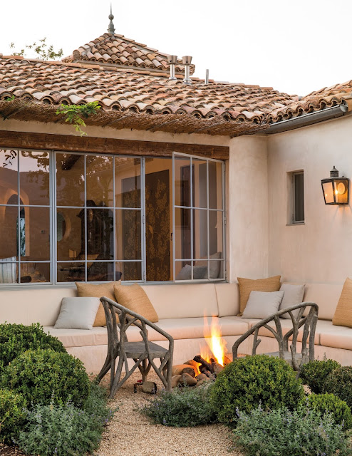 I love how this seating area is tucked into the side of the house.
