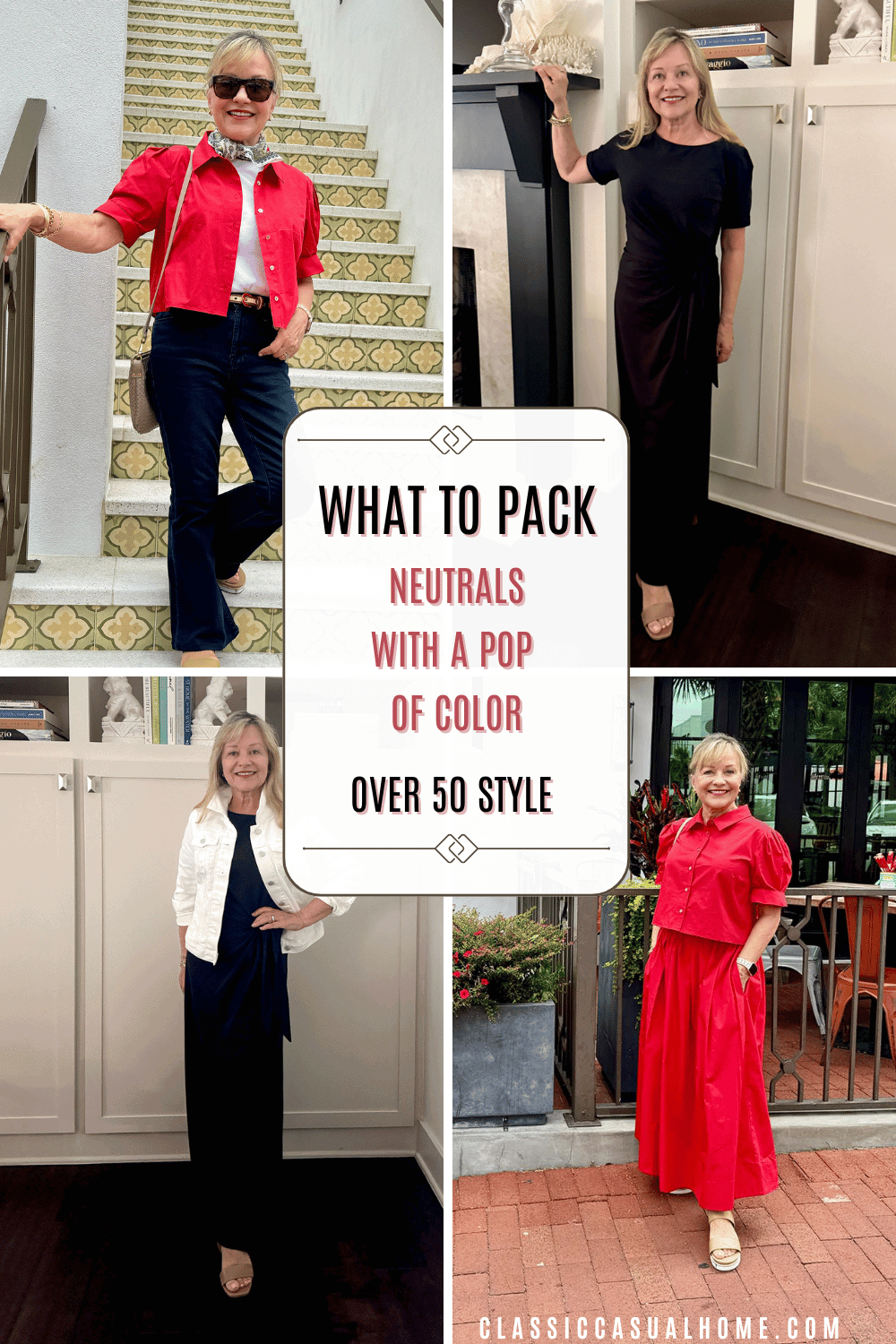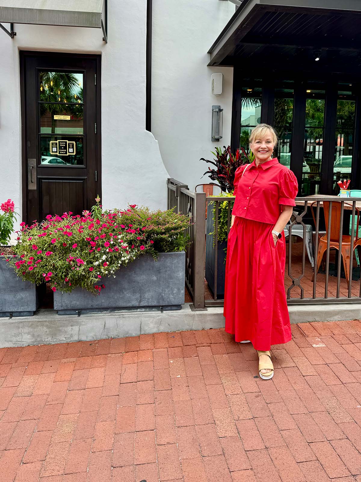 I love those bright red pieces on you Mary Ann! They look striking. I’m with you about traveling light! I find I never wear all the extra things I pack.