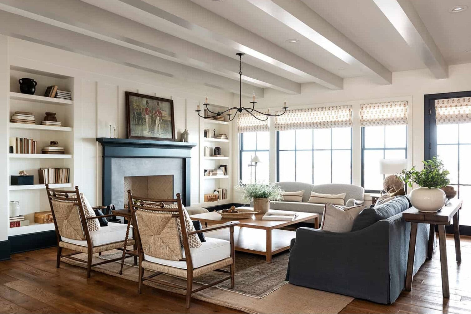 In general, I love touches of black, but my faux limestone fireplace looked terrible painted in soft black. I repainted it quickly with BM Revere Pewter. It looks so much better with my dark brown hardwood floors and creamy white walls and furniture. To use dark colors successfully, you need to consider the other elements in the room, otherwise the one dark color becomes the boss of the room. Hopefully, you have enough touches of black/dark color in your room to pull it off.