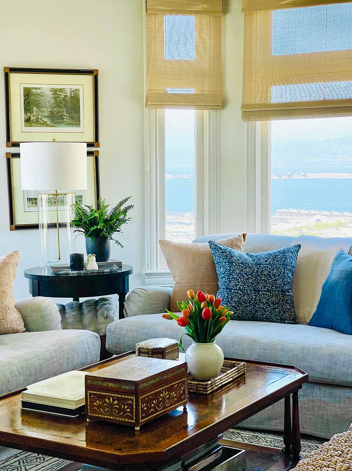 Among window treatment online sources, Blinds.com is the one I turn to specifically for woven wood shades for maximum customization at a good price point. (Incidentally, they are owned by Home Depot now). I used them in our San Francisco apartment as the price was good and we were renting.